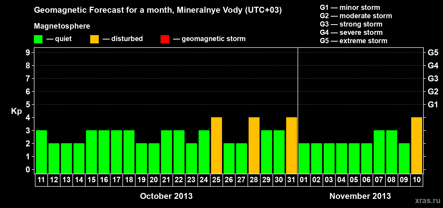 Geomagnetic activity forecast in Mineralnye Vody — Oct 11, 2013