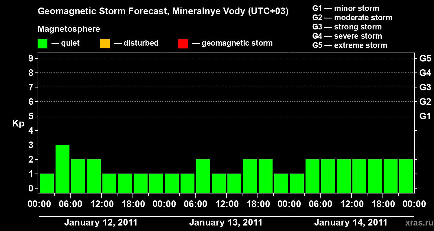 Geomagnetic storm forecast in Mineralnye Vody for Jan 12, 2011