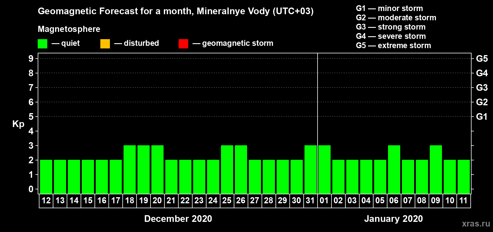 Geomagnetic activity forecast in Mineralnye Vody — Dec 12, 2019