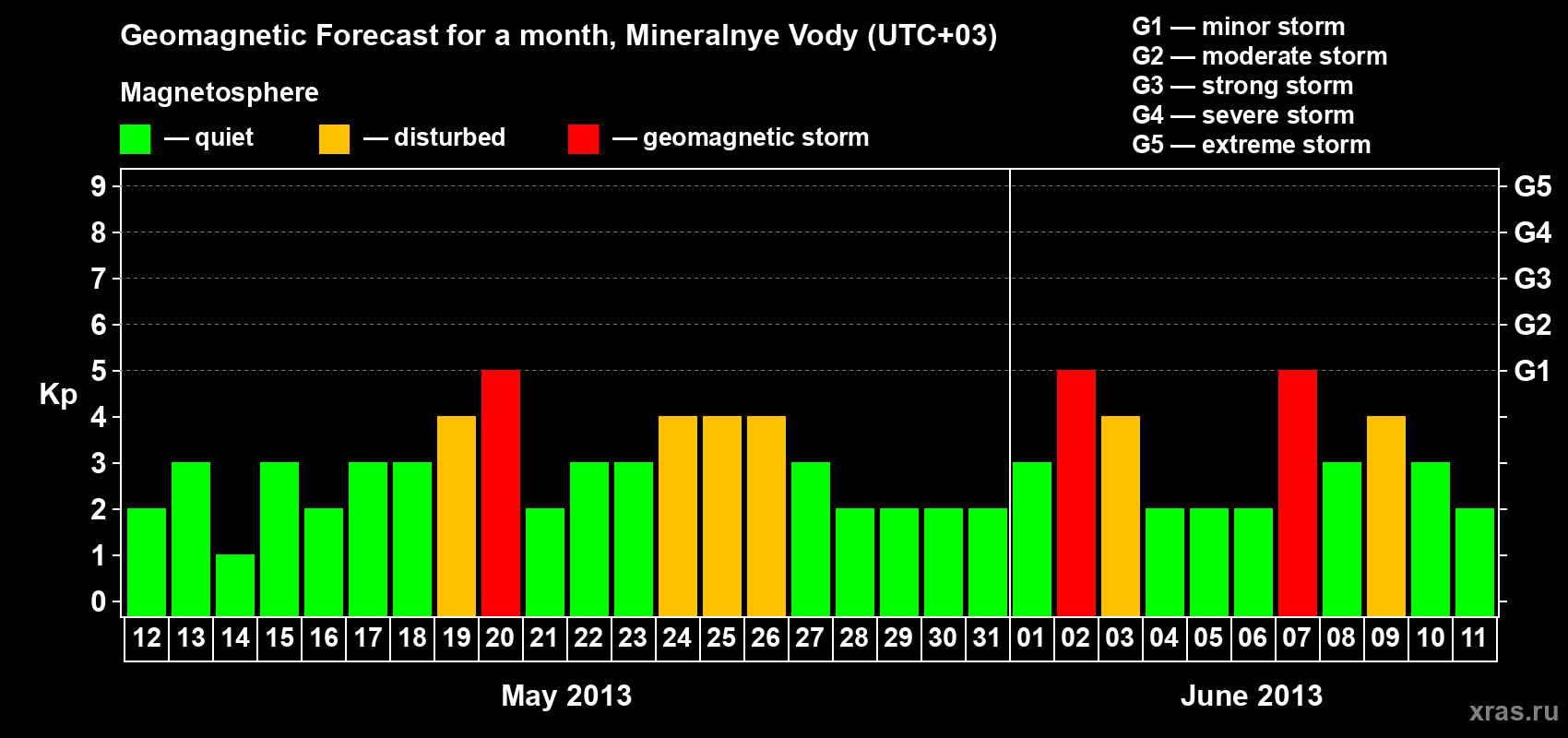 Geomagnetic storm forecast in Mineralnye Vody for May 12, 2013