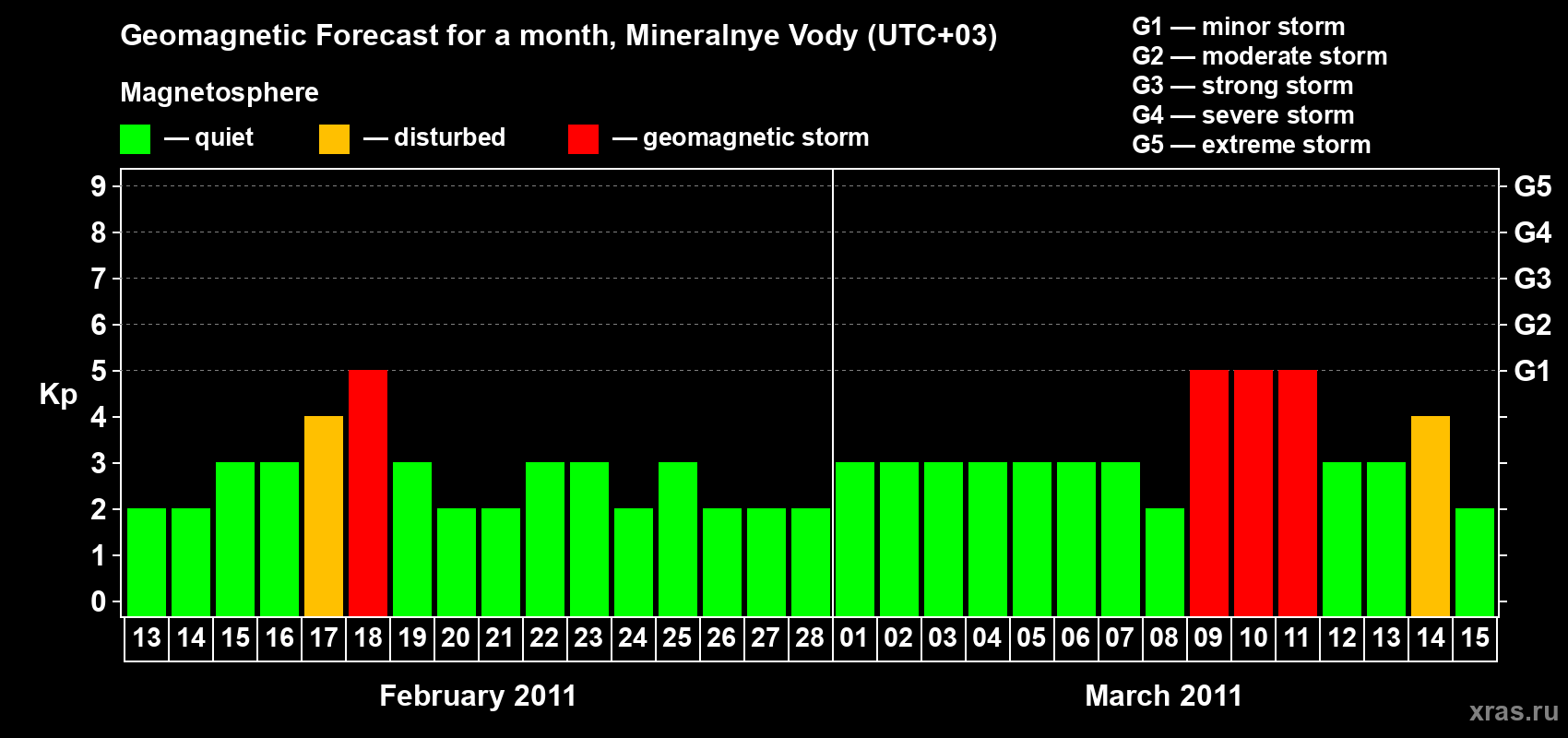Geomagnetic activity forecast in Mineralnye Vody — Feb 13, 2011