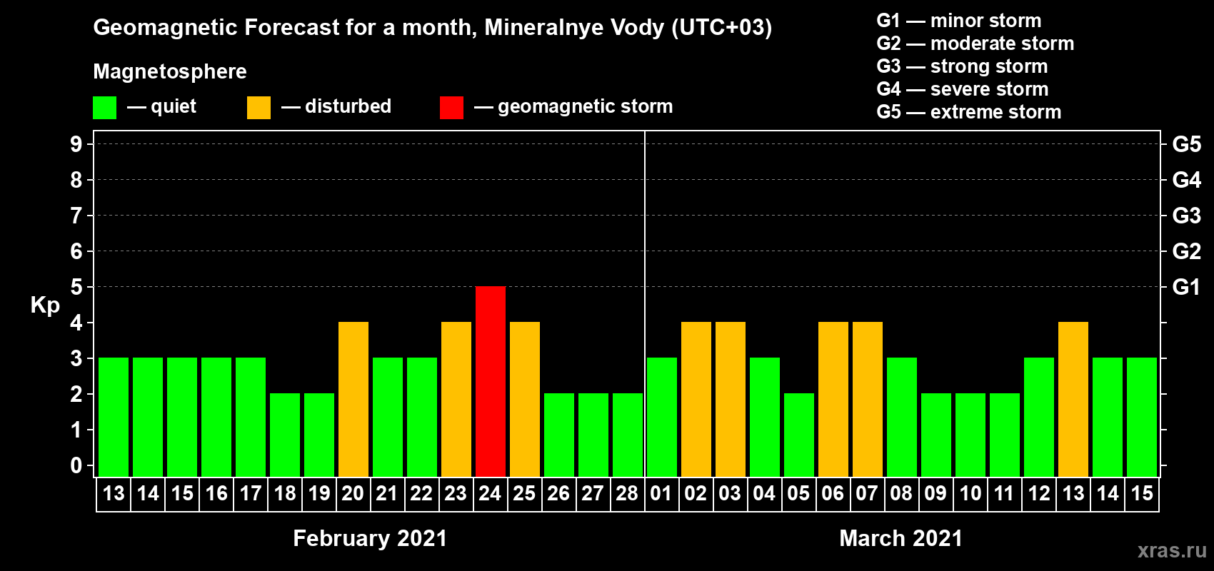 Geomagnetic activity forecast in Mineralnye Vody — Feb 13, 2021