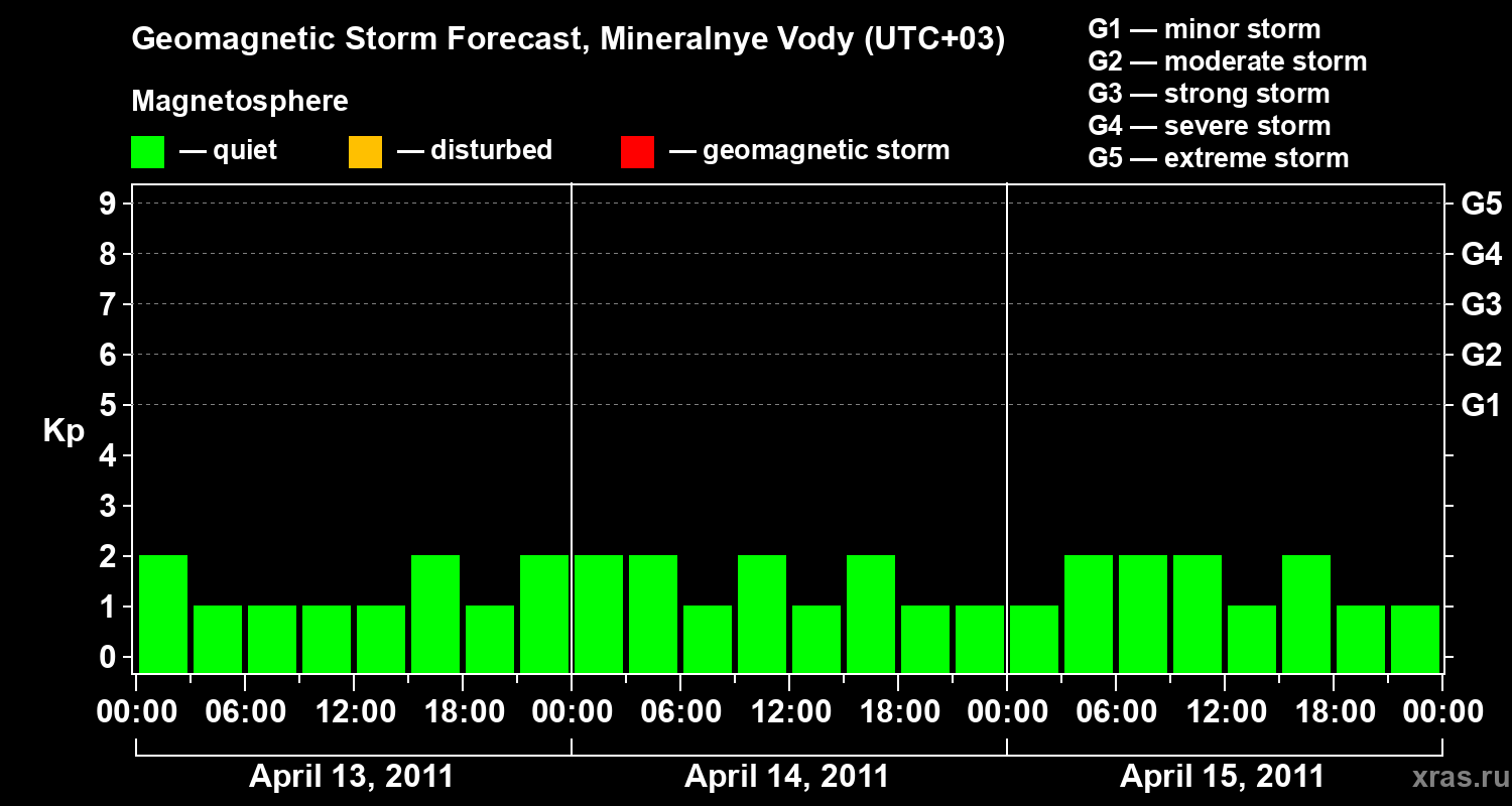 Geomagnetic storm forecast in Mineralnye Vody for Apr 13, 2011