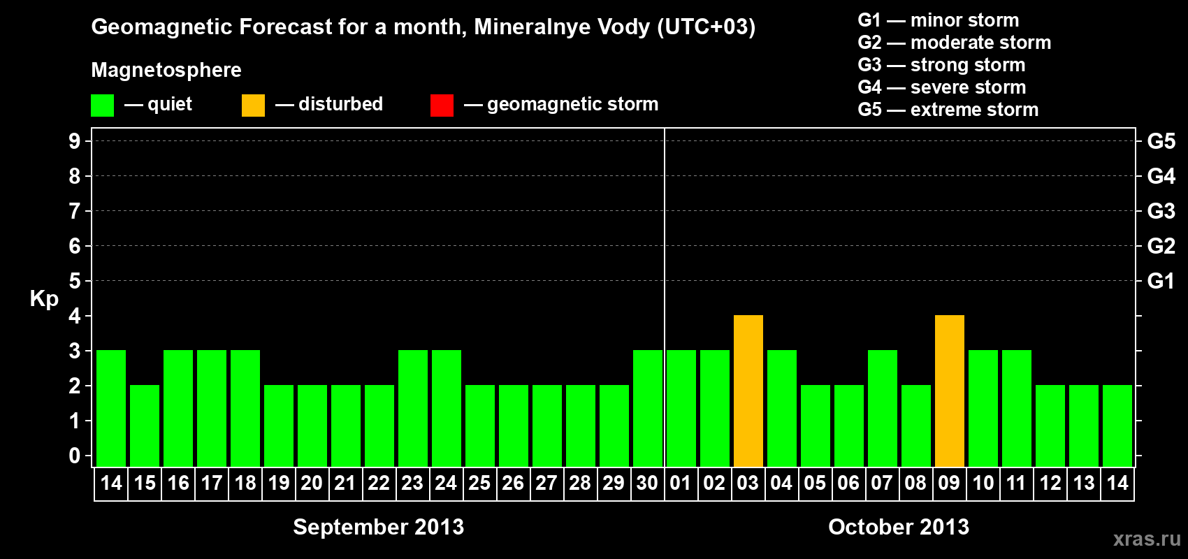 Geomagnetic storm forecast in Mineralnye Vody for Sep 14, 2013