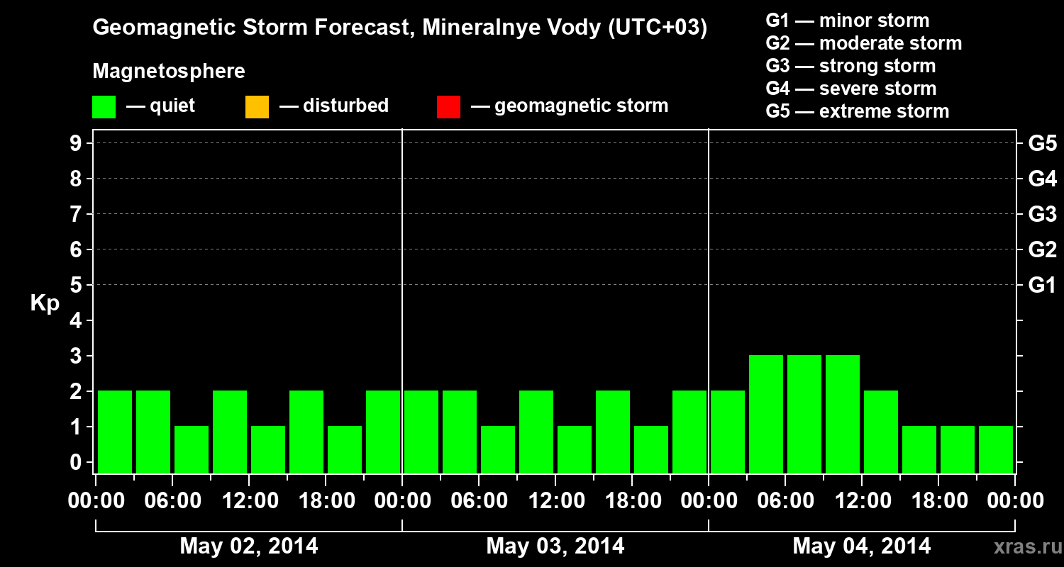 Geomagnetic storm forecast in Mineralnye Vody for May 02, 2014