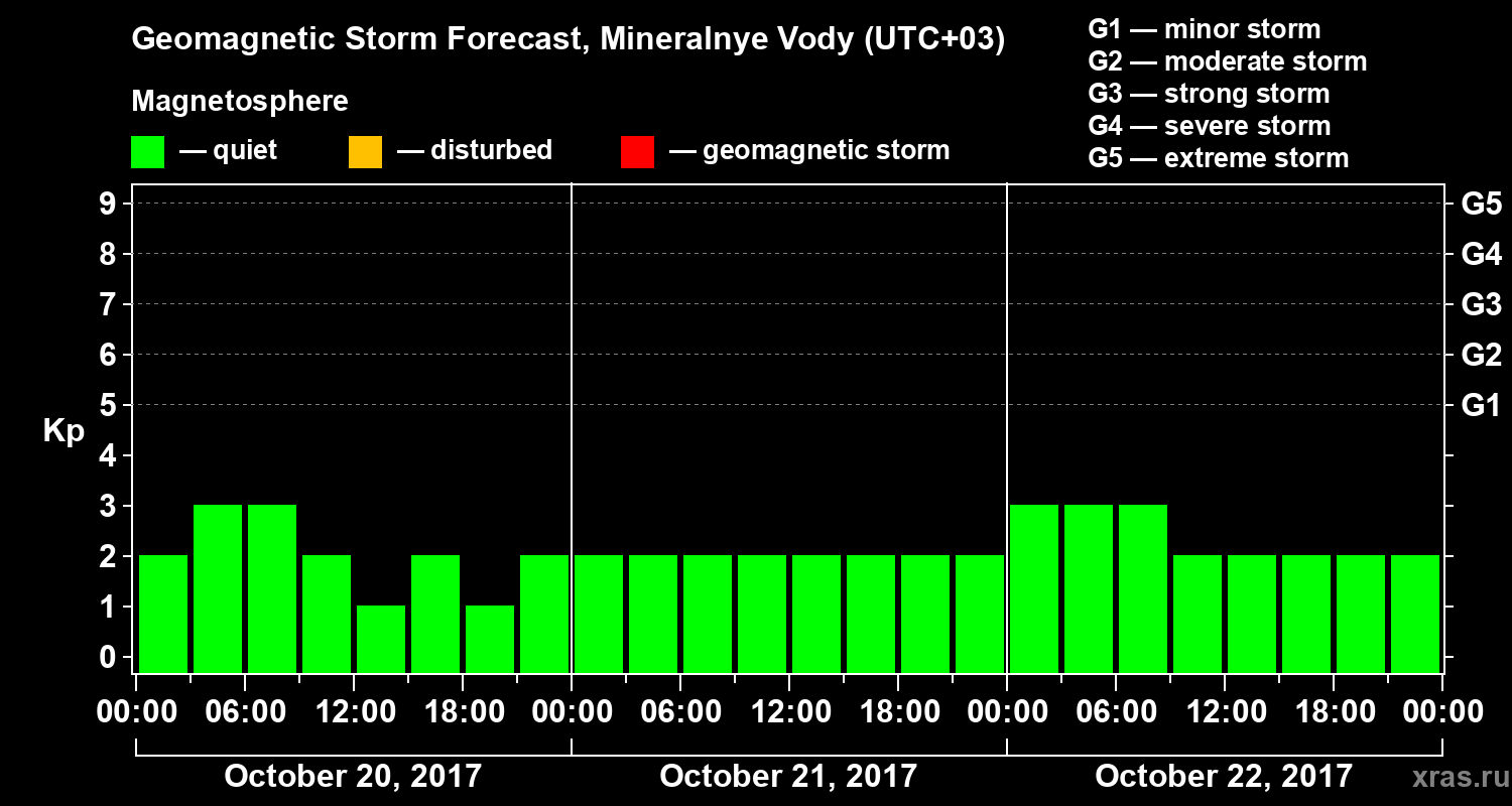 Geomagnetic storm forecast in Mineralnye Vody for Oct 20, 2017
