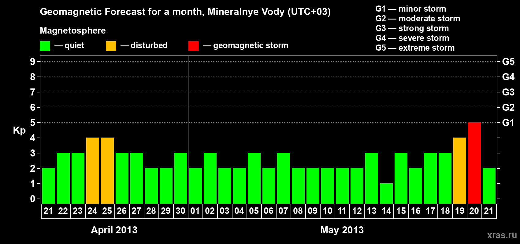 Geomagnetic storm forecast in Mineralnye Vody for Apr 21, 2013