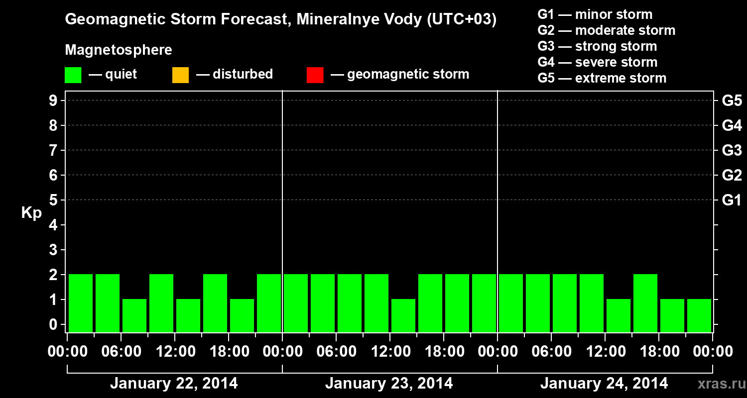 Geomagnetic storm forecast in Mineralnye Vody for Jan 22, 2014