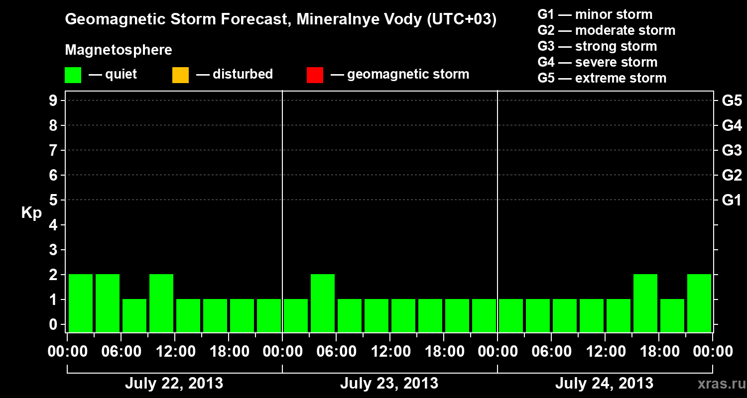 Geomagnetic storm forecast in Mineralnye Vody for Jul 22, 2013