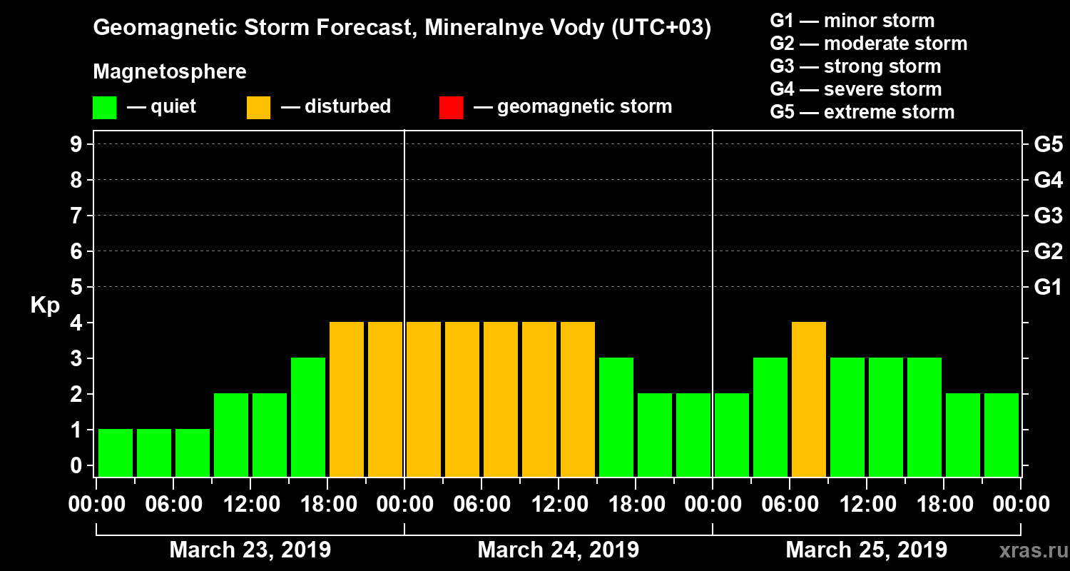 Geomagnetic storm forecast in Mineralnye Vody for Mar 23, 2019
