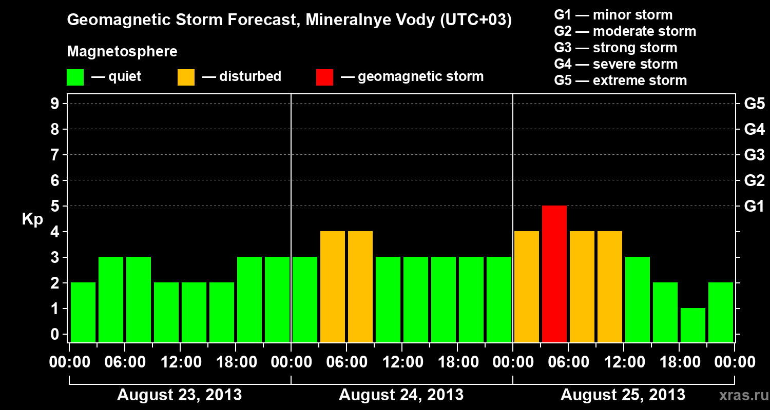 Geomagnetic storm forecast in Mineralnye Vody for Aug 23, 2013