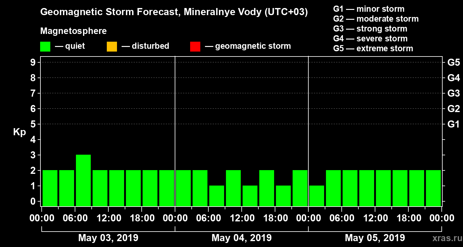 Geomagnetic activity forecast in Mineralnye Vody — May 03, 2019