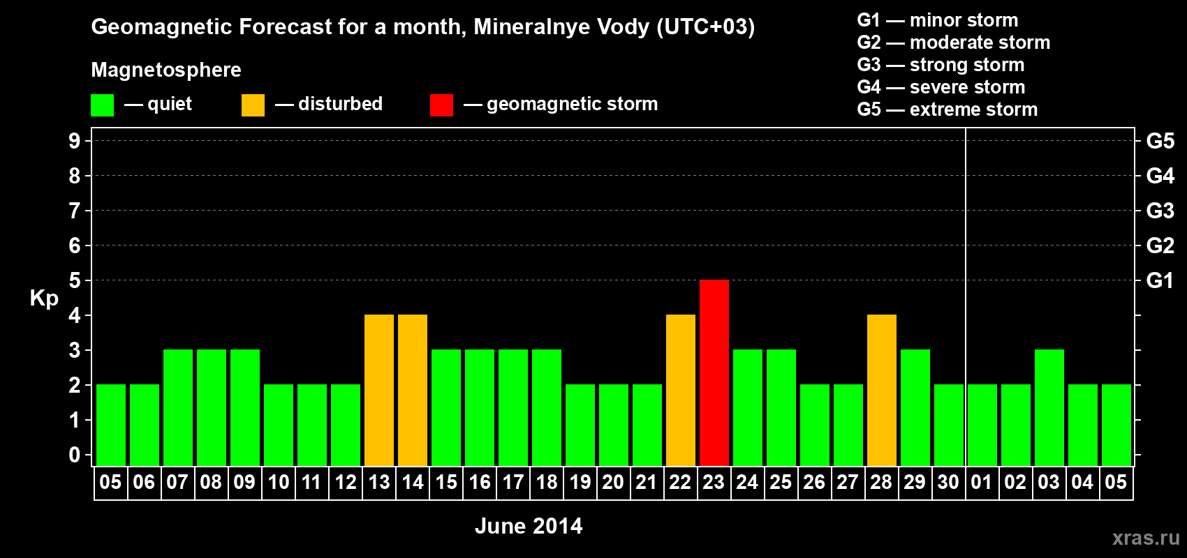 Geomagnetic storm forecast in Mineralnye Vody for Jun 05, 2014