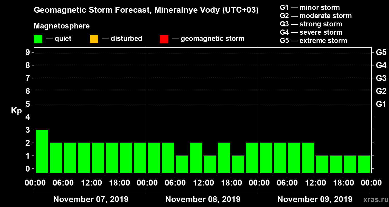 Geomagnetic activity forecast in Mineralnye Vody — Nov 07, 2019