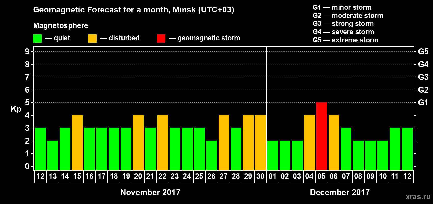 Geomagnetic storm forecast in Minsk for Nov 12, 2017