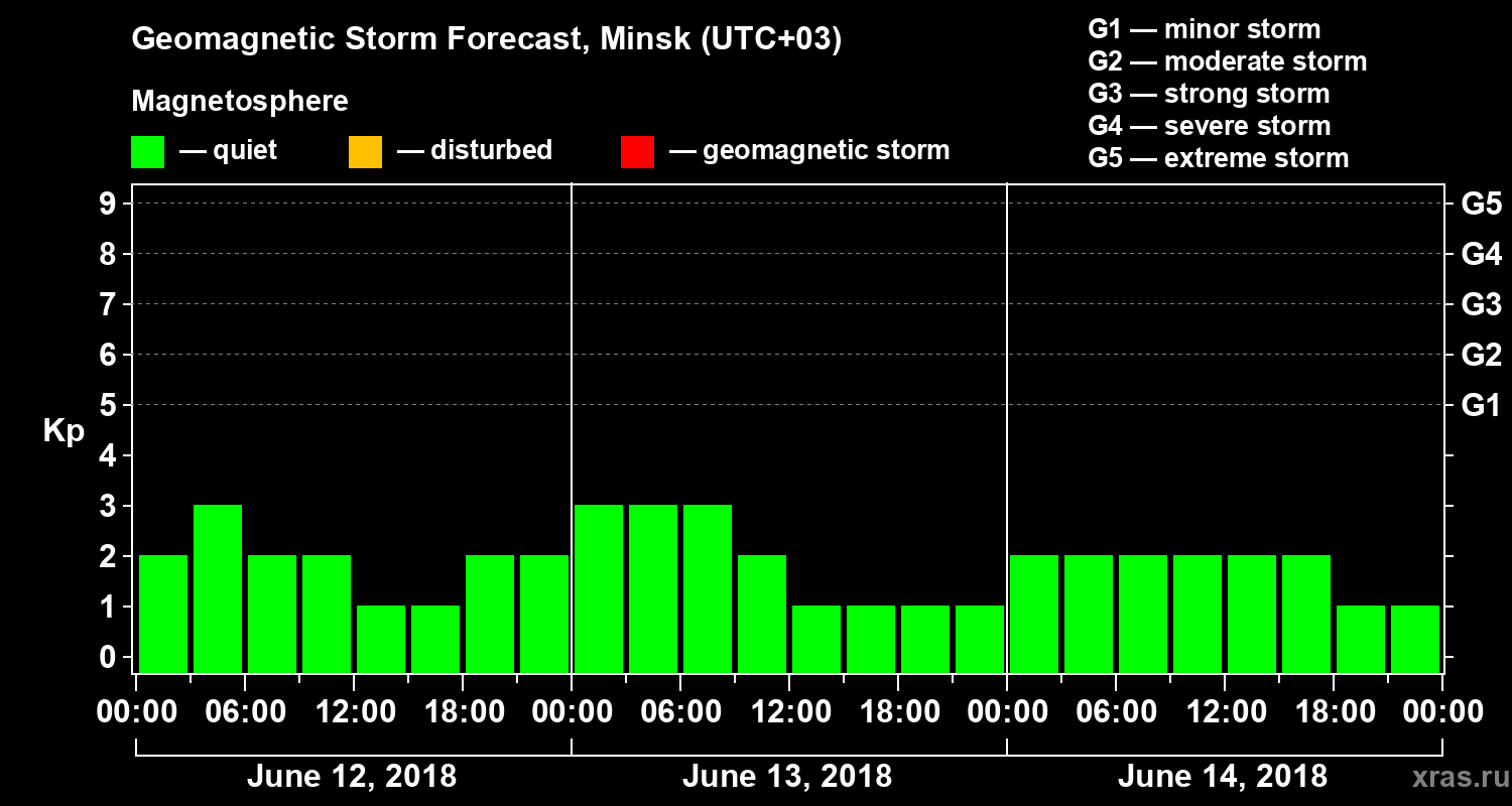 Geomagnetic storm forecast in Minsk for Jun 12, 2018