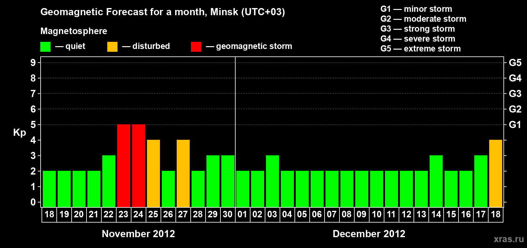 Geomagnetic storm forecast in Minsk for Nov 18, 2012