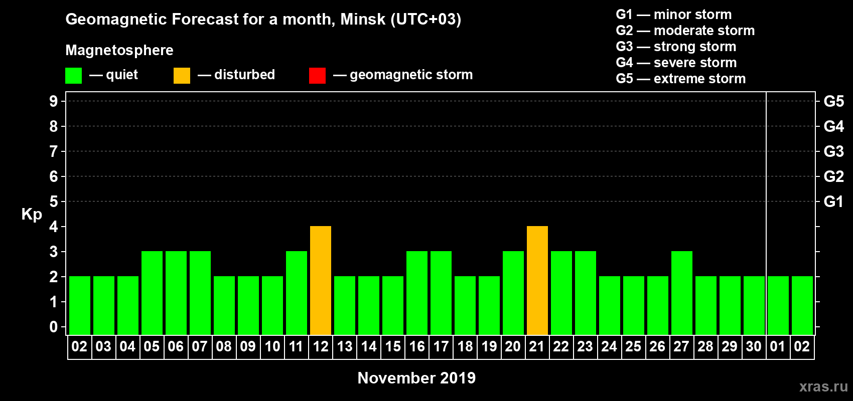 Geomagnetic activity forecast in Minsk — Nov 02, 2019