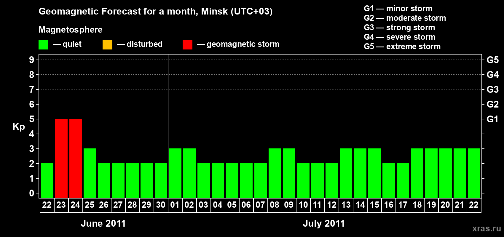 Geomagnetic storm forecast in Minsk for Jun 22, 2011