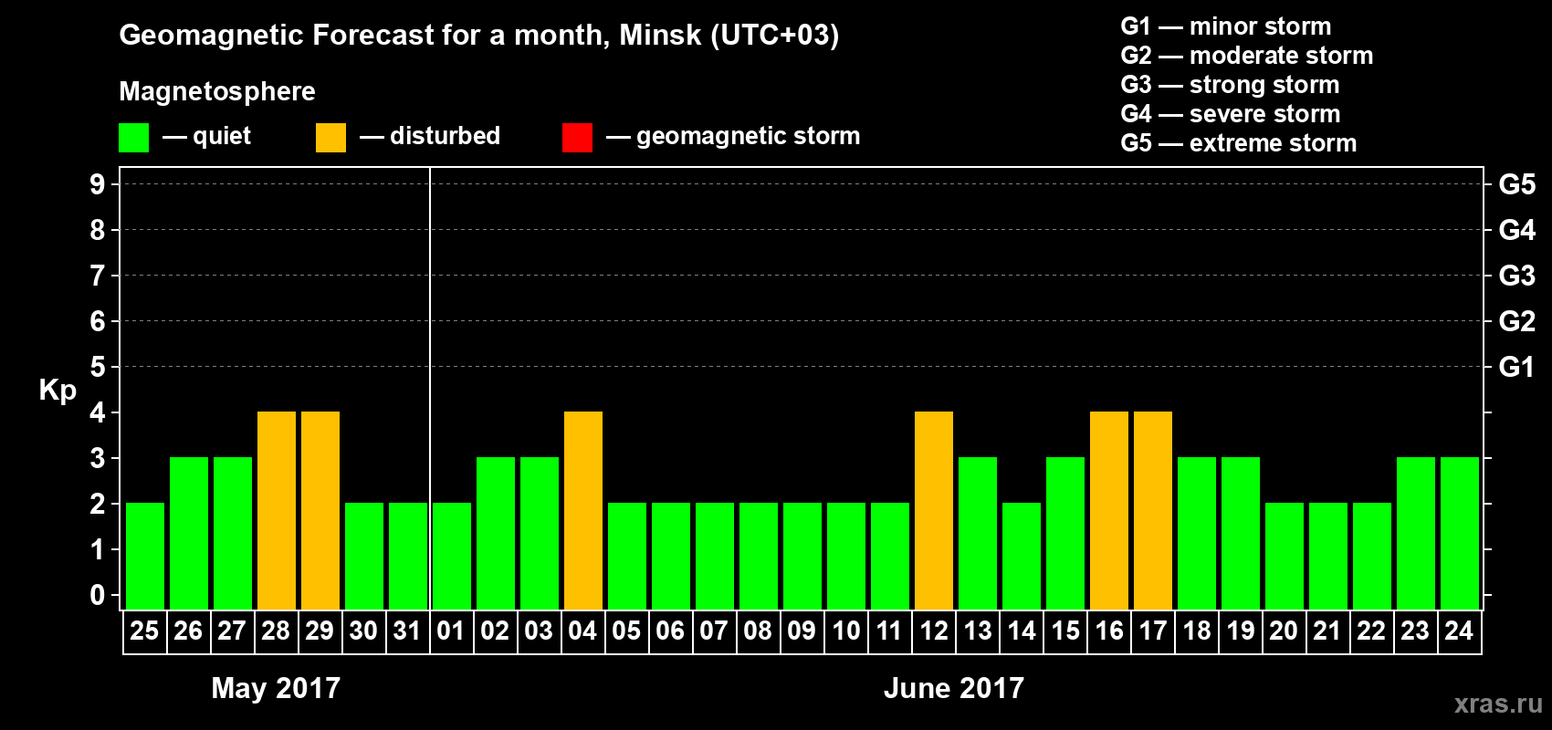 Geomagnetic activity forecast in Minsk — May 25, 2017