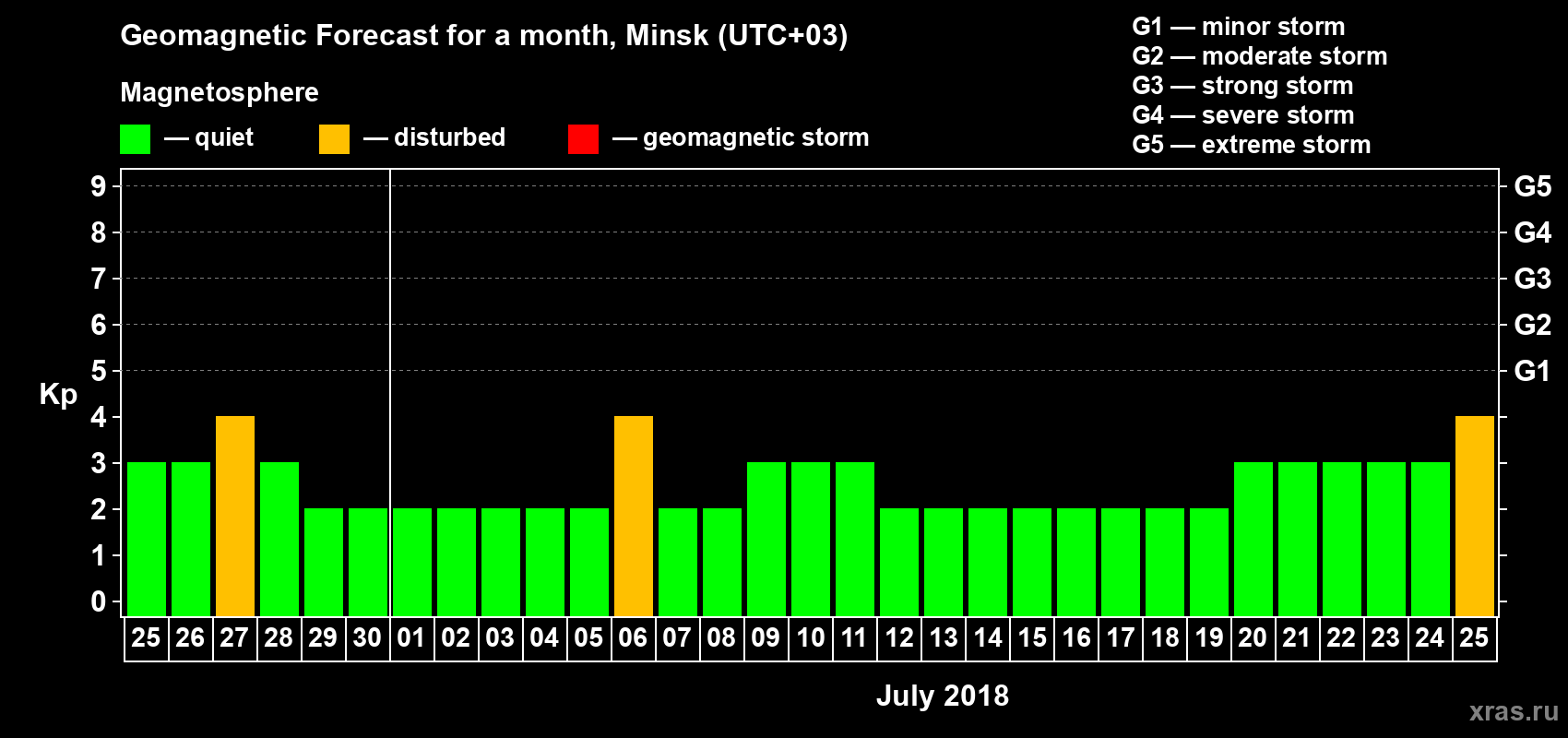 Geomagnetic storm forecast in Minsk for Jun 25, 2018