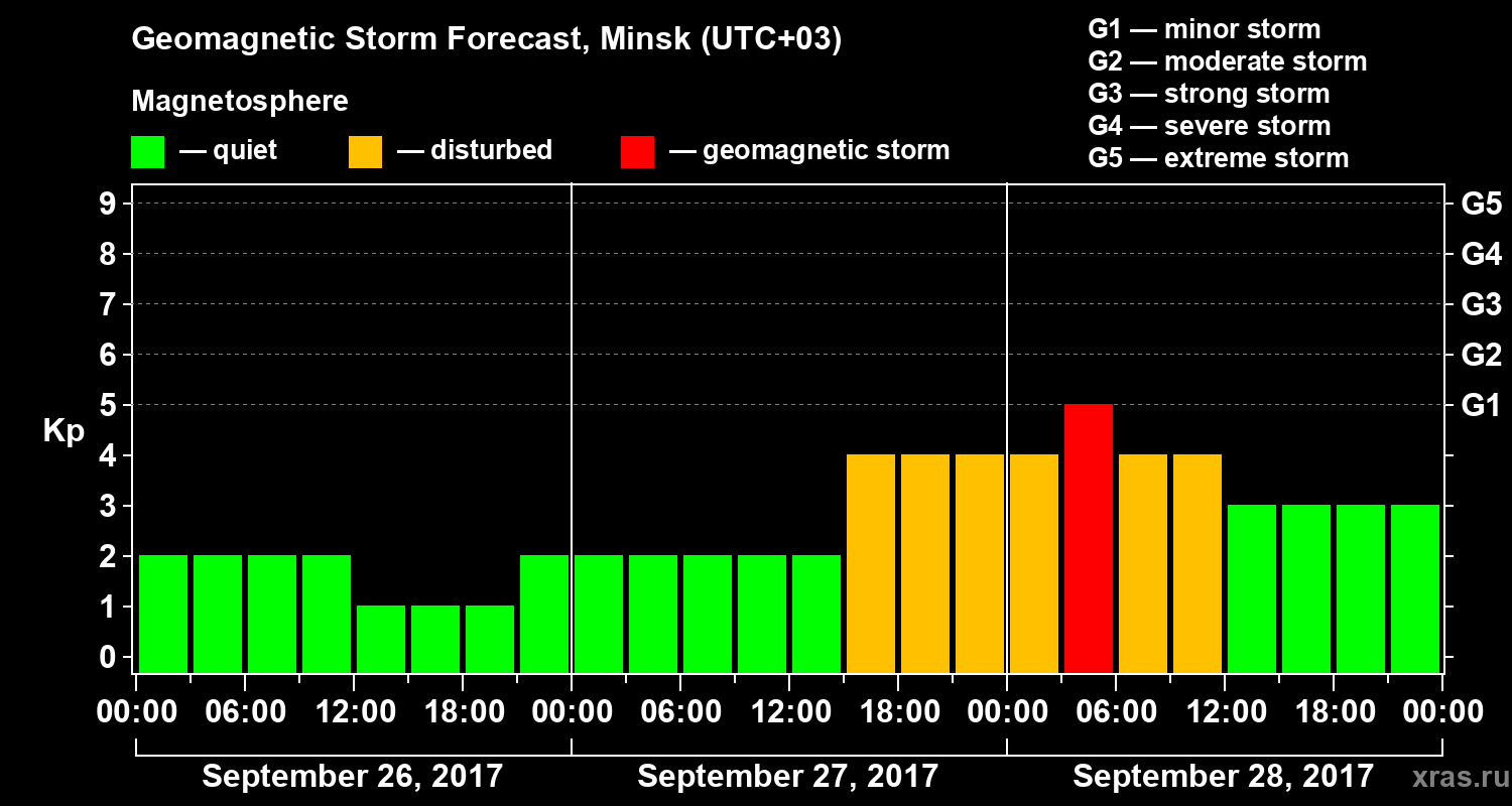 Geomagnetic storm forecast in Minsk for Sep 26, 2017