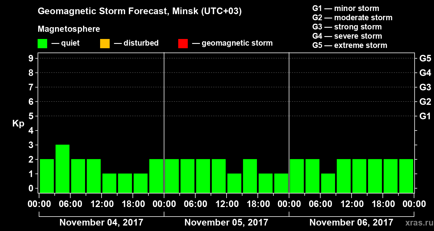 Geomagnetic activity forecast in Minsk — Nov 04, 2017
