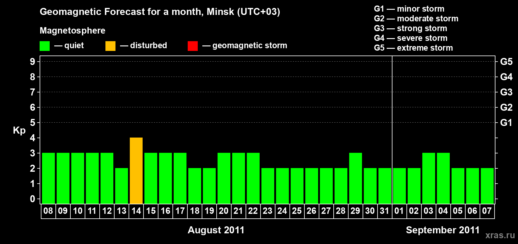 Geomagnetic storm forecast in Minsk for Aug 08, 2011