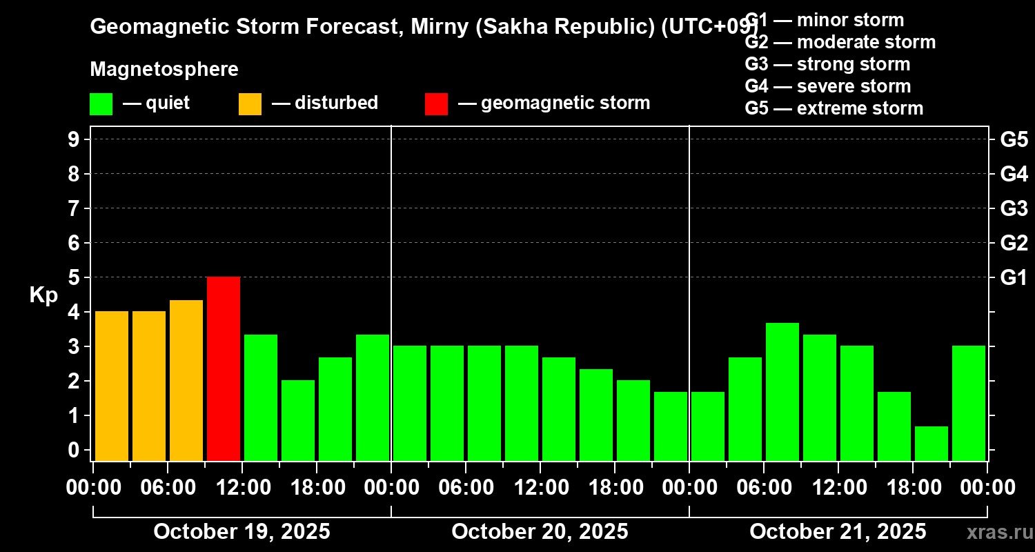 Geomagnetic storm forecast in Mirny (Sakha Republic) for Oct 19, 2025