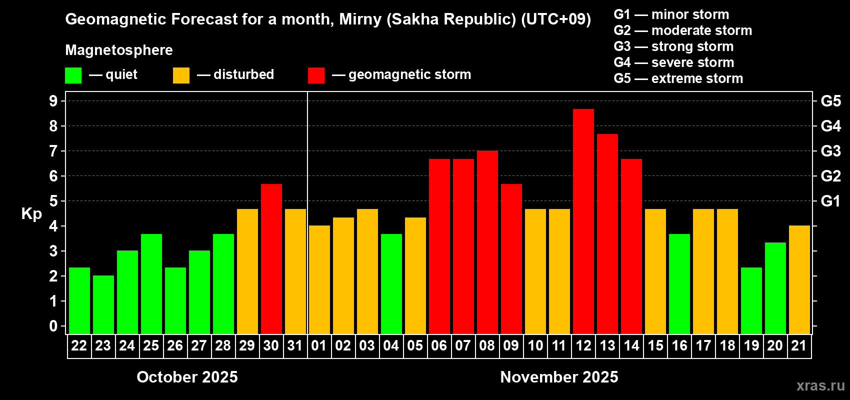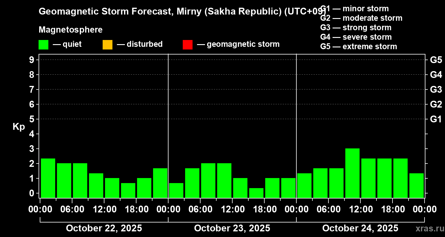 Geomagnetic storm forecast in Mirny (Sakha Republic) for Oct 22, 2025
