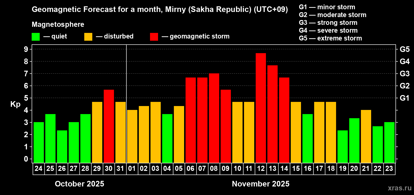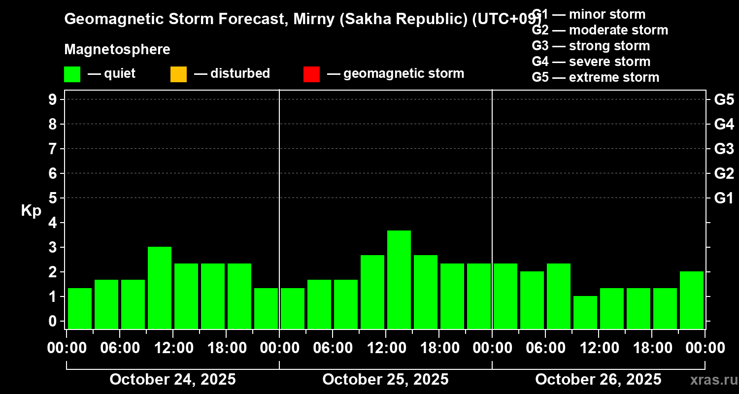 Geomagnetic storm forecast in Mirny (Sakha Republic) for Oct 24, 2025