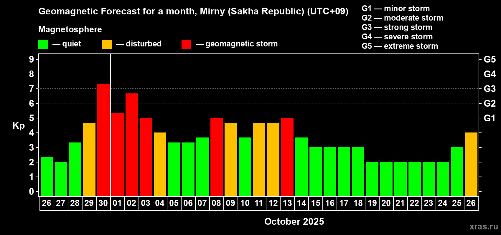 Geomagnetic storm forecast in Mirny (Sakha Republic) for Sep 26, 2025