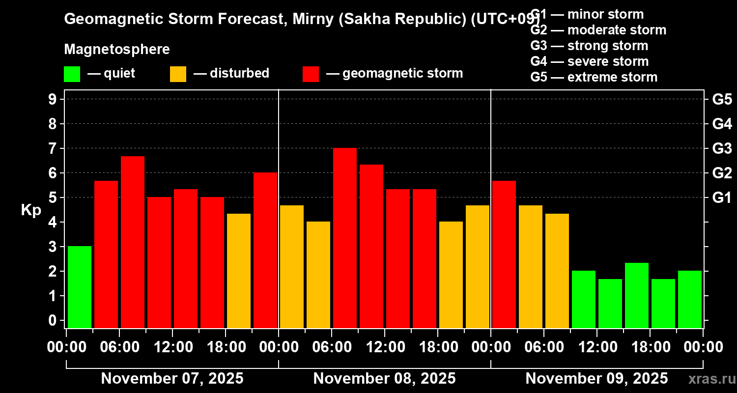 Geomagnetic storm forecast in Mirny (Sakha Republic) for Nov 07, 2025