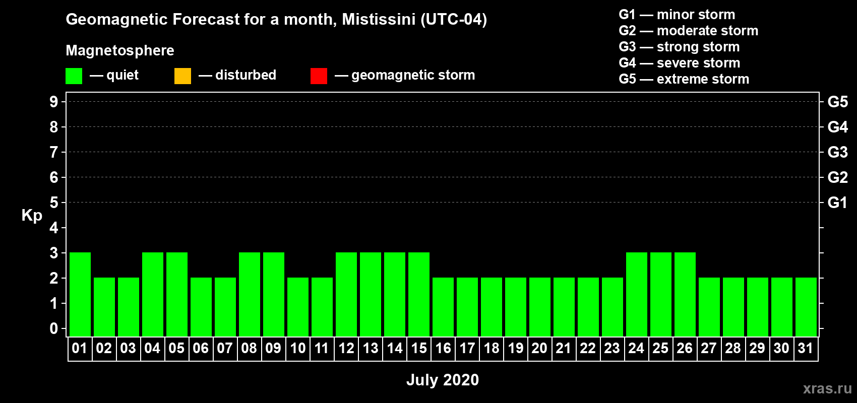 Geomagnetic storm forecast in Mistissini for Jul 01, 2020