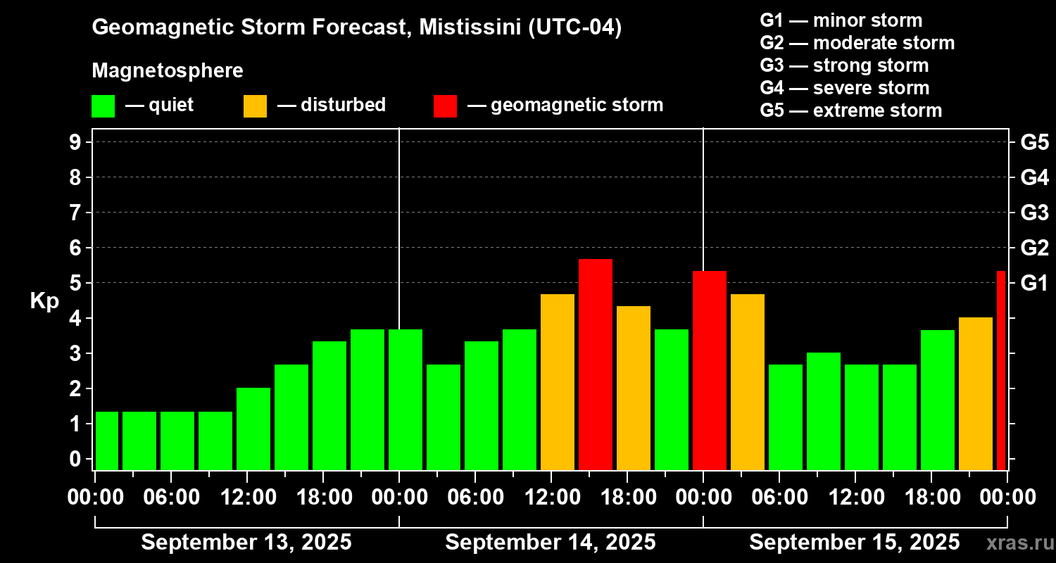 Geomagnetic storm forecast in Mistissini for Sep 13, 2025