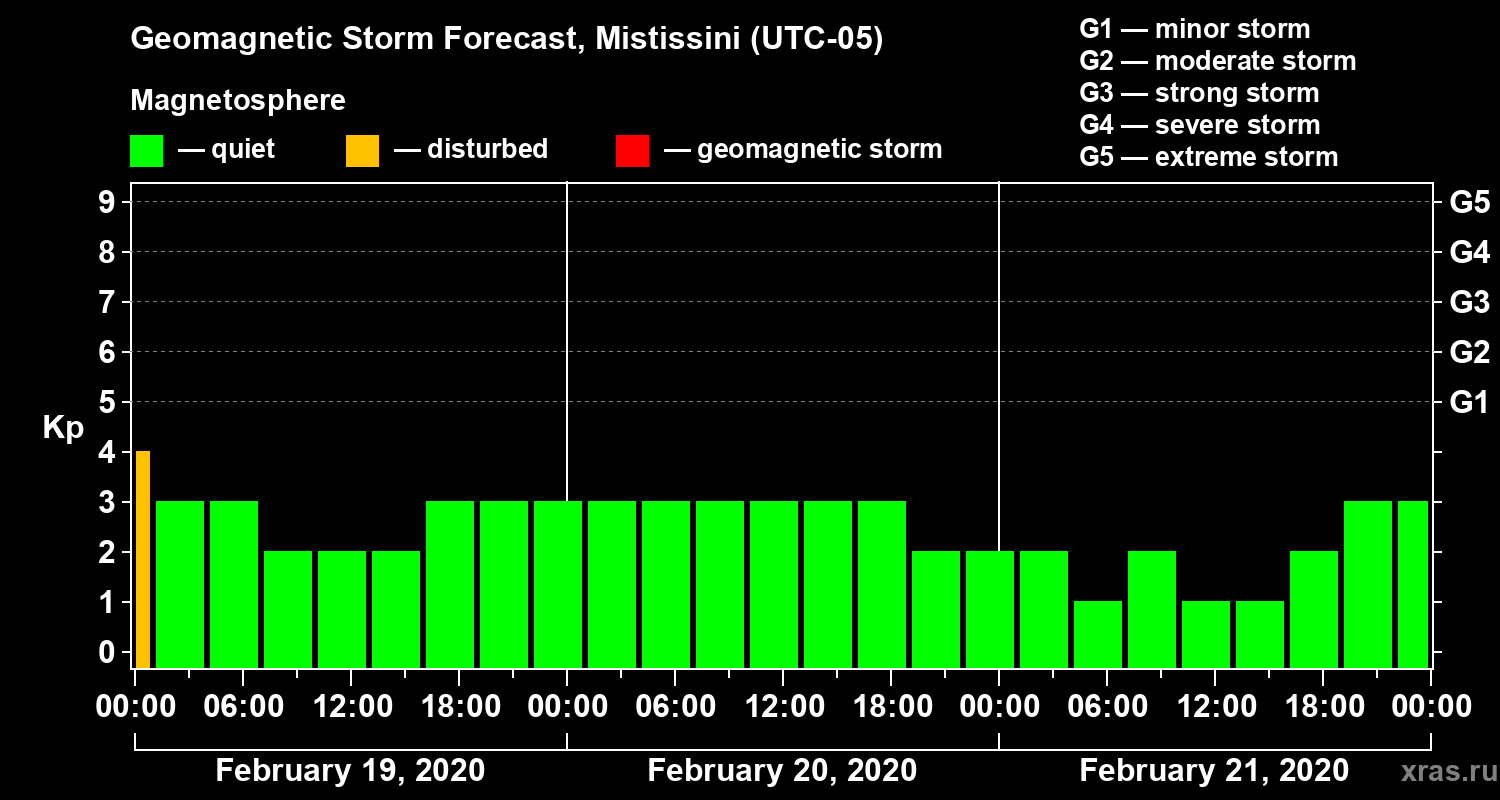 Geomagnetic activity forecast in Mistissini — Feb 19, 2020