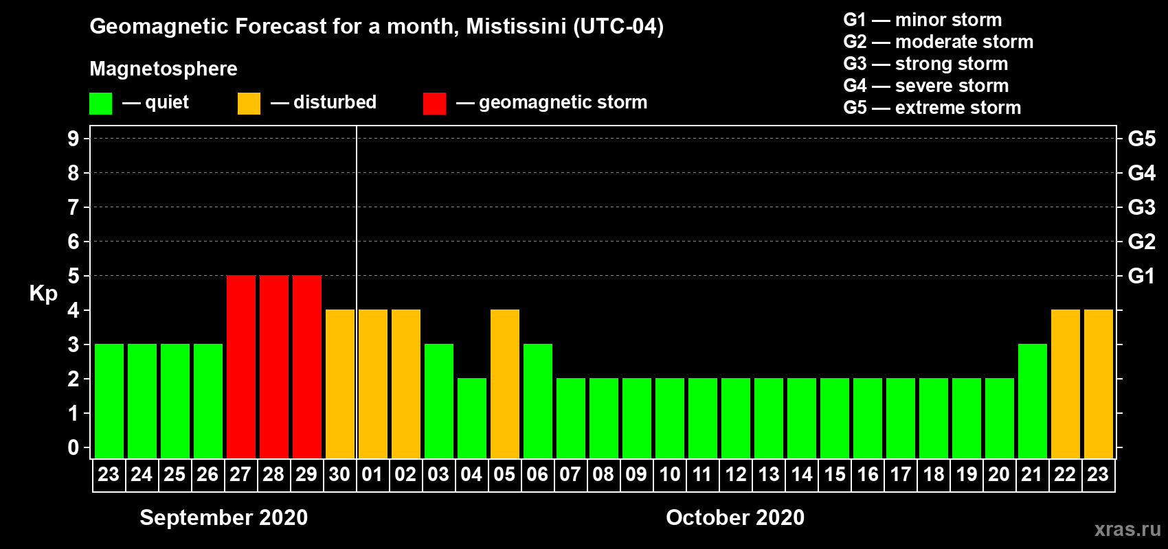 Geomagnetic storm forecast in Mistissini for Sep 23, 2020