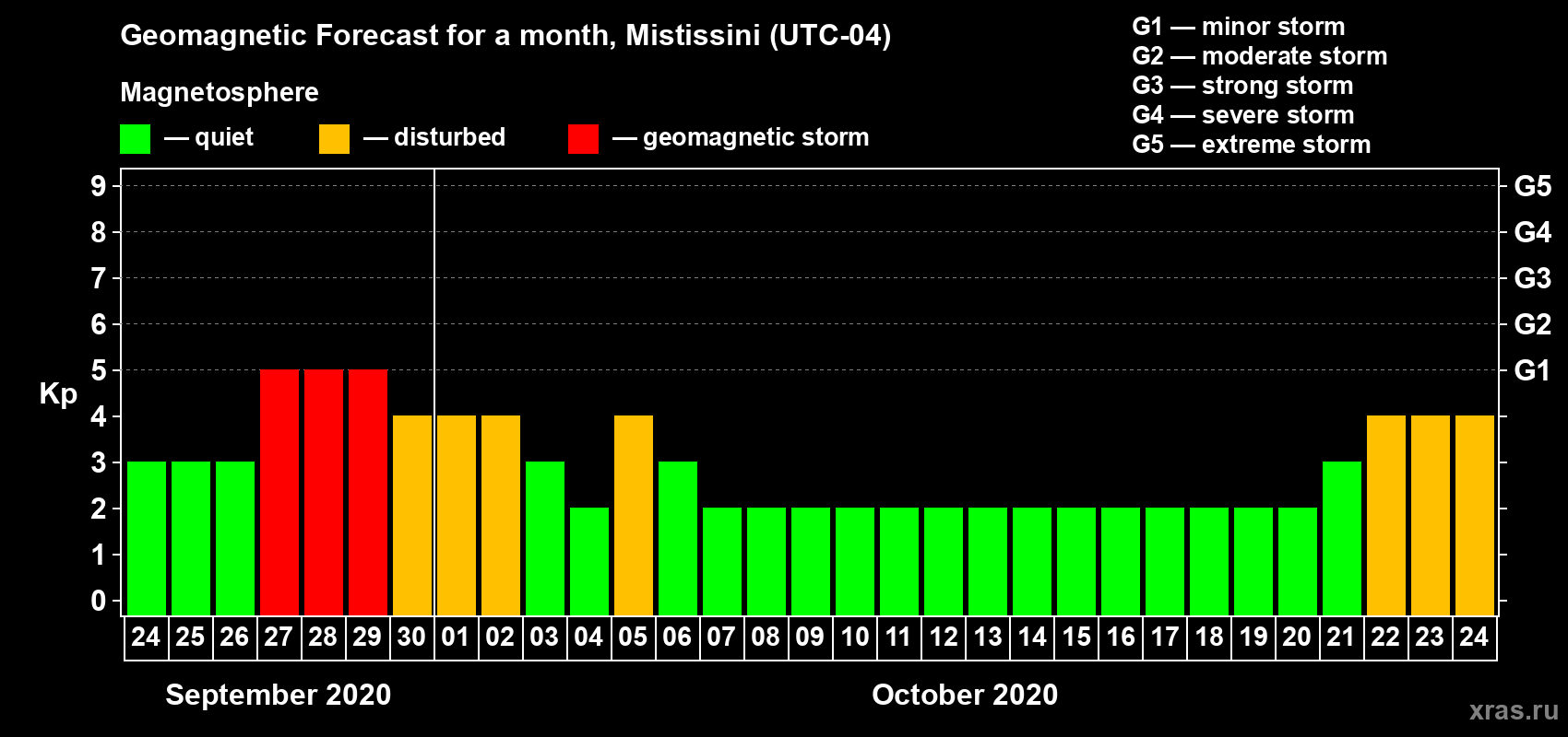 Geomagnetic storm forecast in Mistissini for Sep 24, 2020