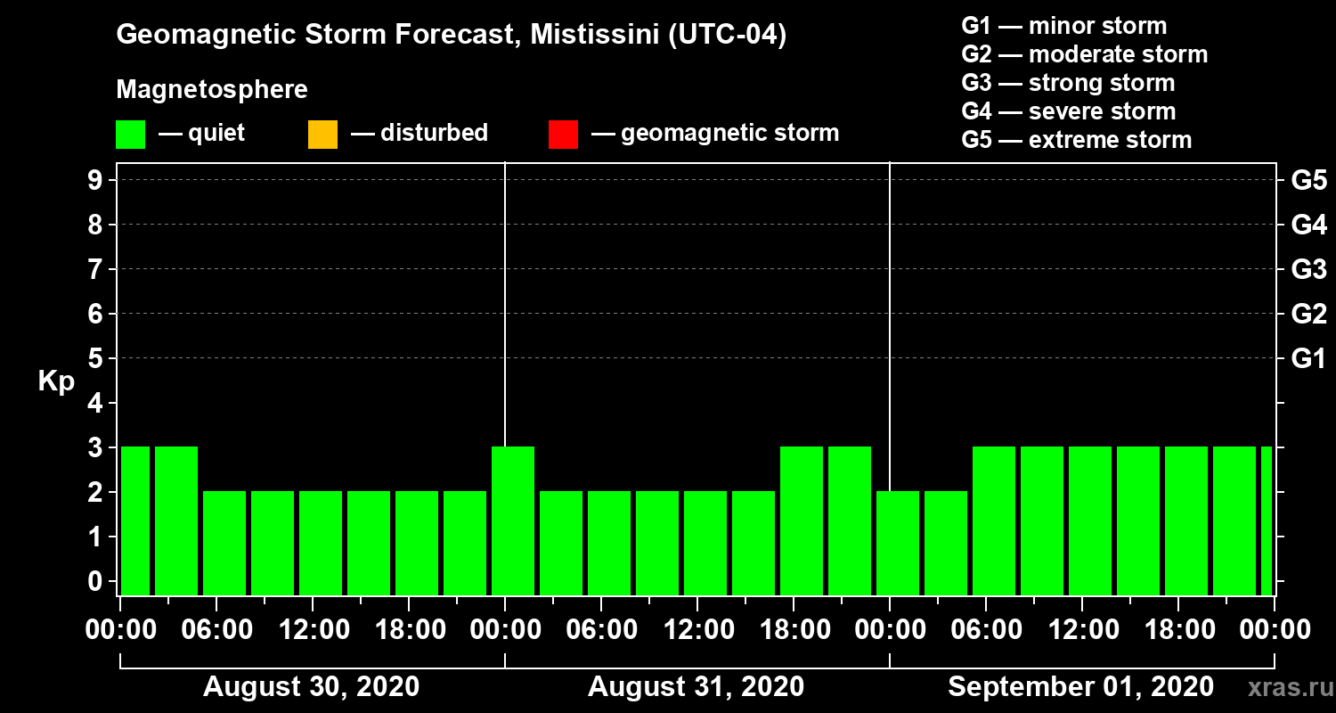 Geomagnetic activity forecast in Mistissini — Aug 30, 2020