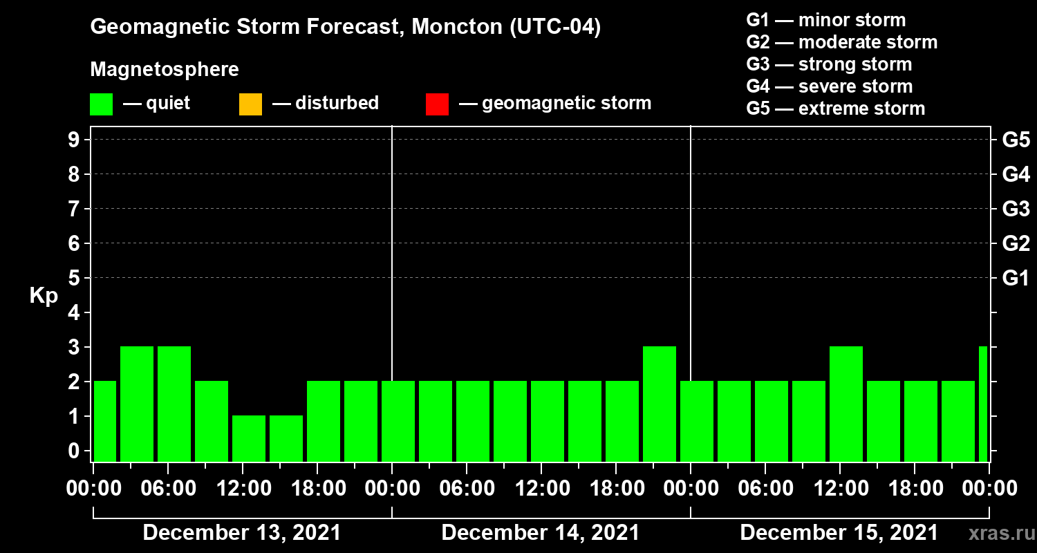 Geomagnetic activity forecast in Moncton — Dec 13, 2021