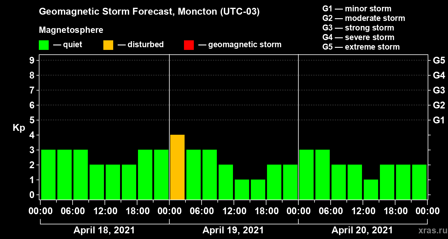 Geomagnetic activity forecast in Moncton — Apr 18, 2021