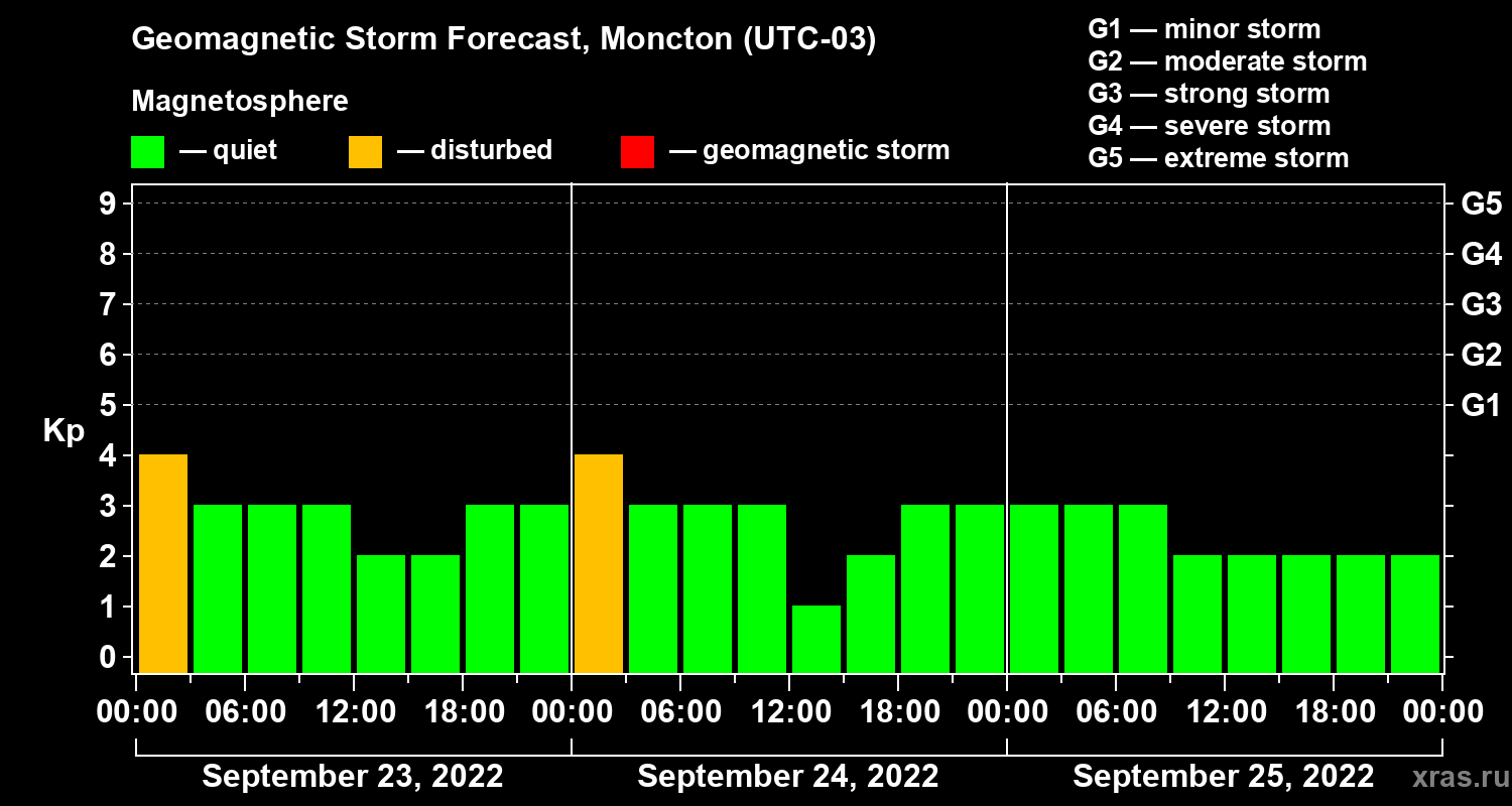 Geomagnetic storm forecast in Moncton for Sep 23, 2022