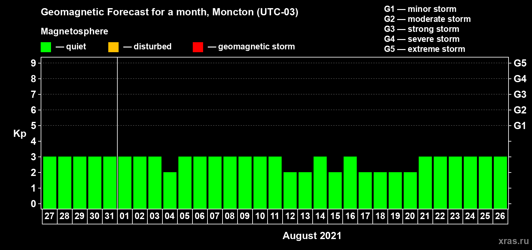 Geomagnetic activity forecast in Moncton — Jul 27, 2021
