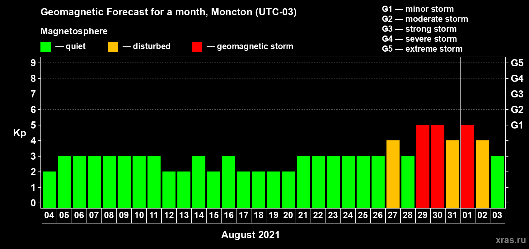 Geomagnetic activity forecast in Moncton — Aug 04, 2021