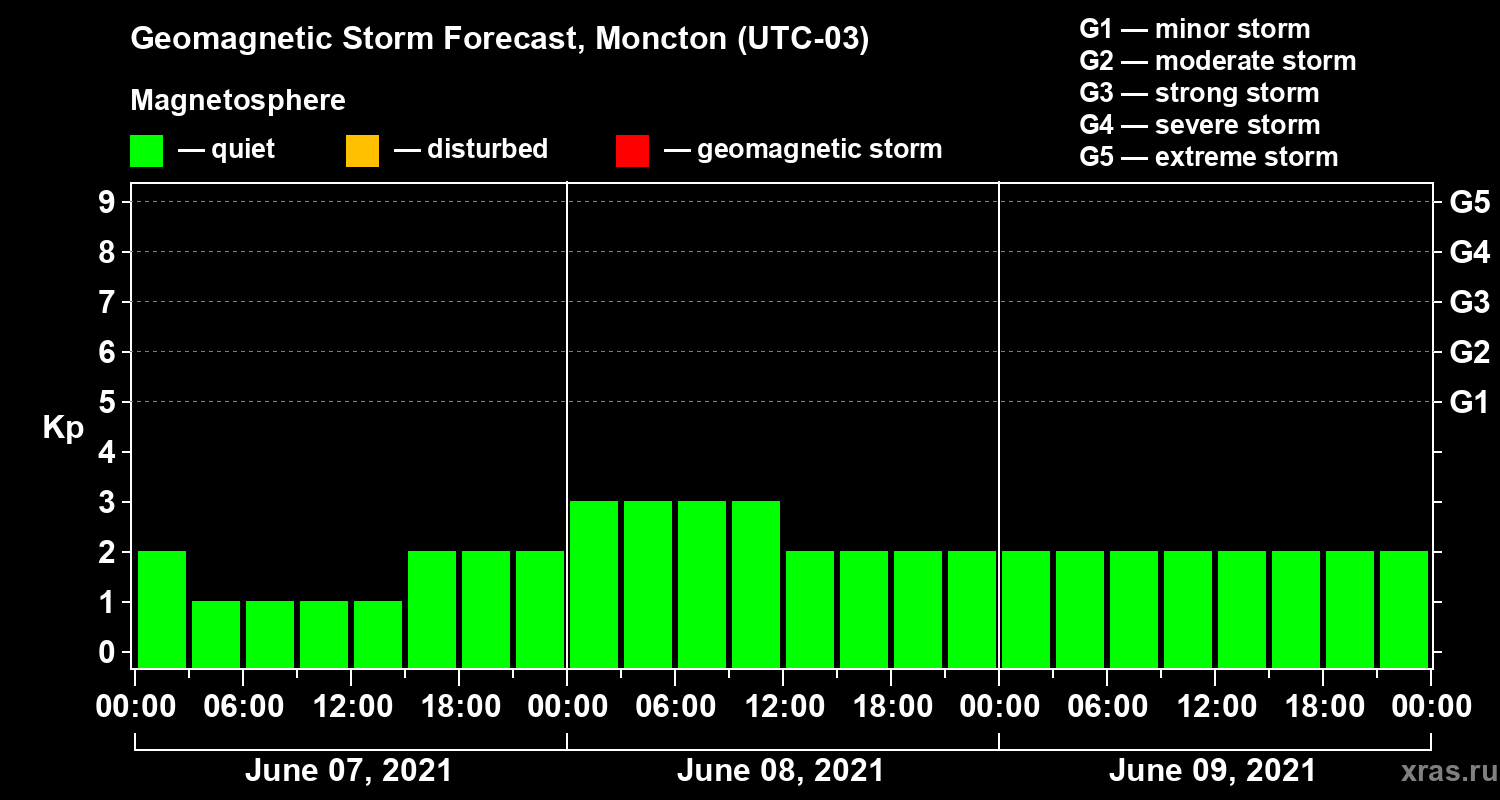 Geomagnetic storm forecast in Moncton for Jun 07, 2021