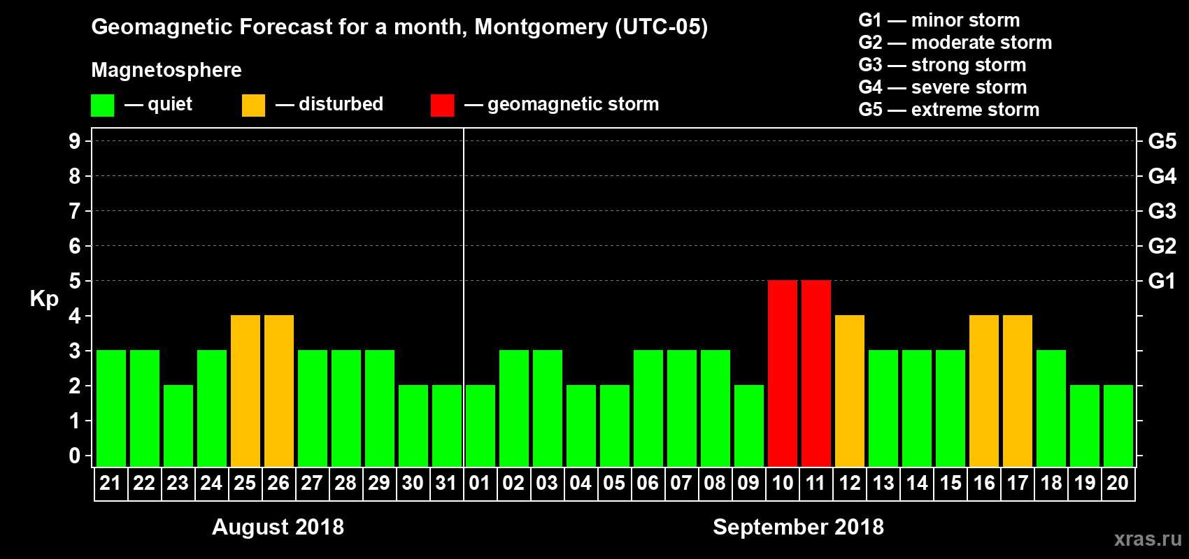 Geomagnetic activity forecast in Montgomery — Aug 21, 2018