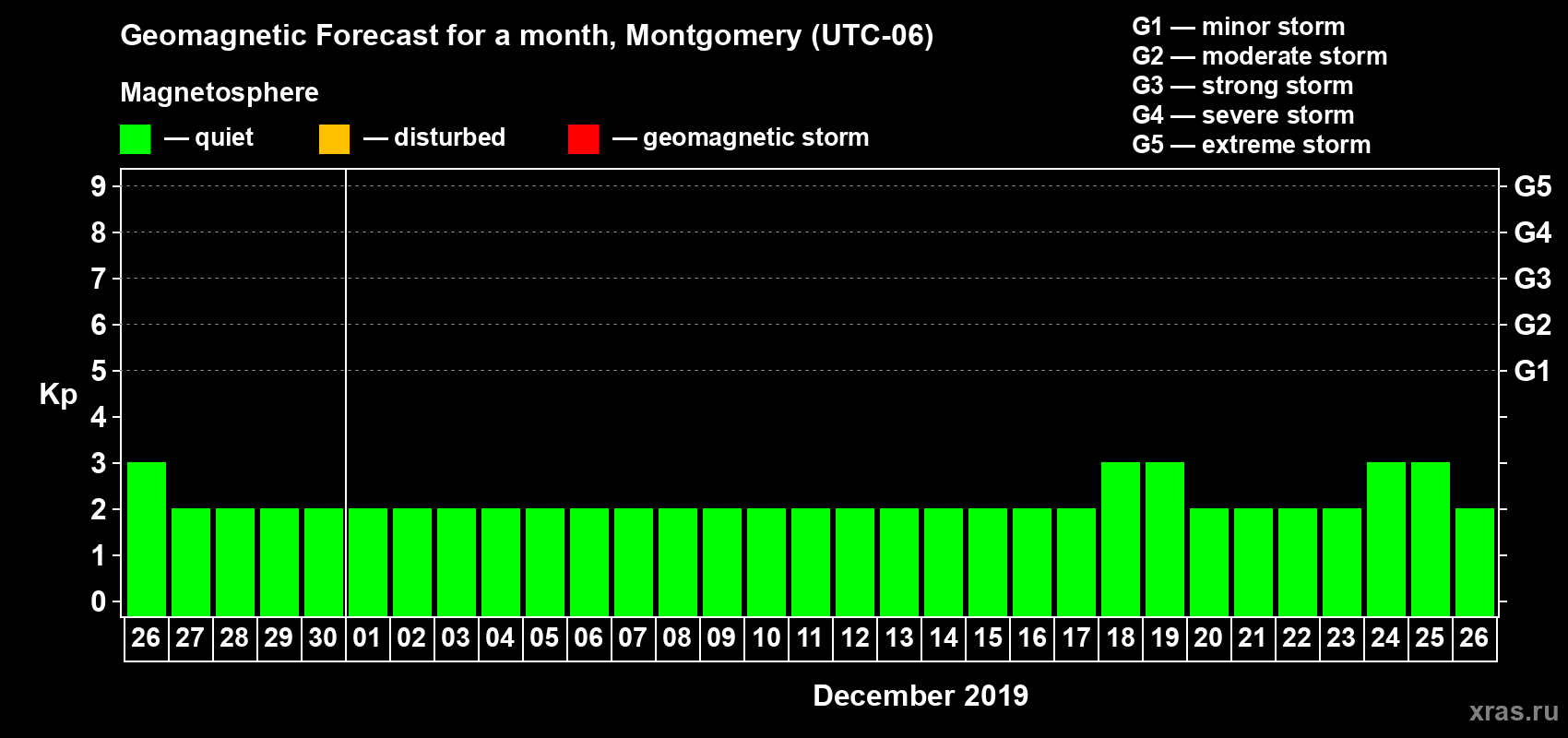 Geomagnetic storm forecast in Montgomery for Nov 26, 2019