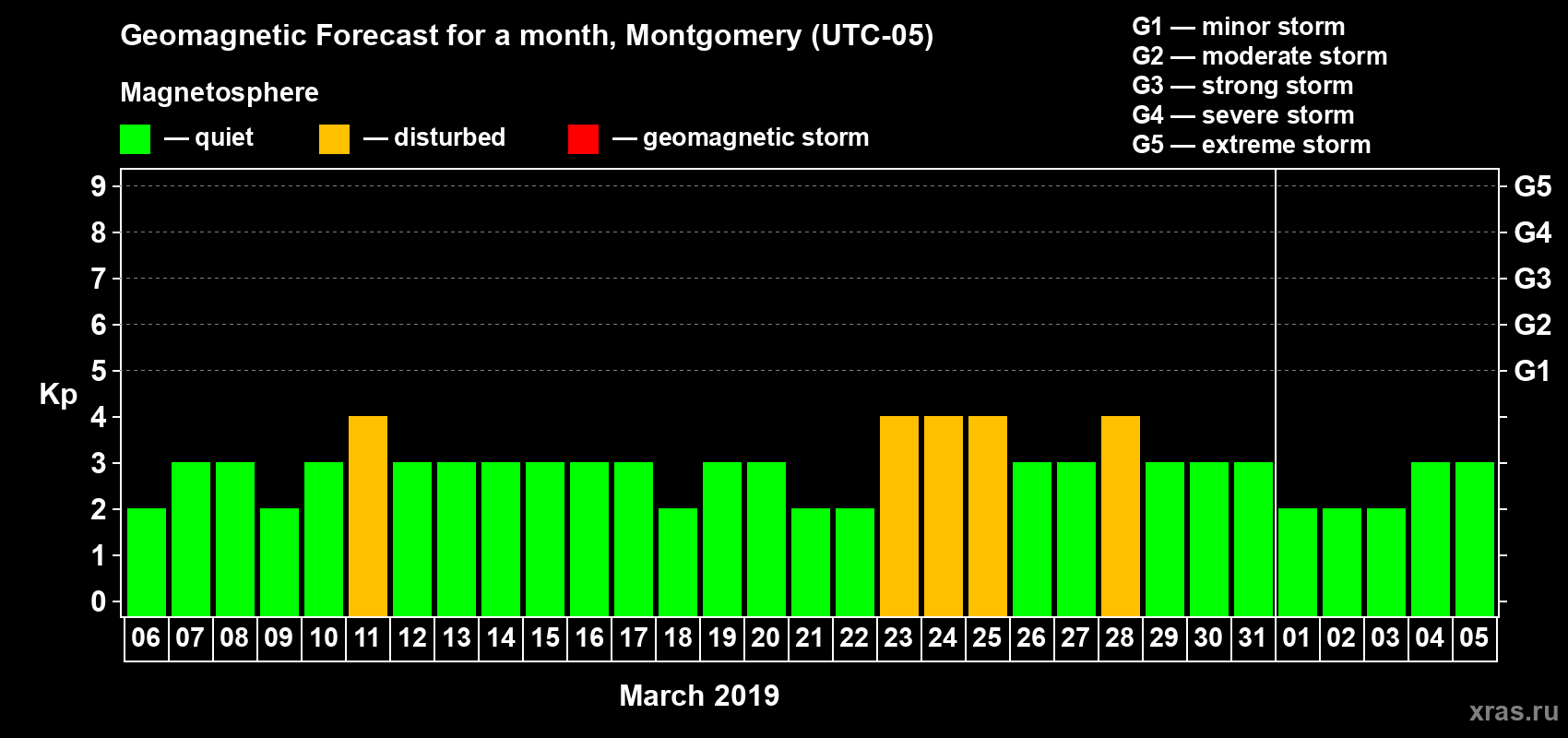 Geomagnetic storm forecast in Montgomery for Mar 06, 2019