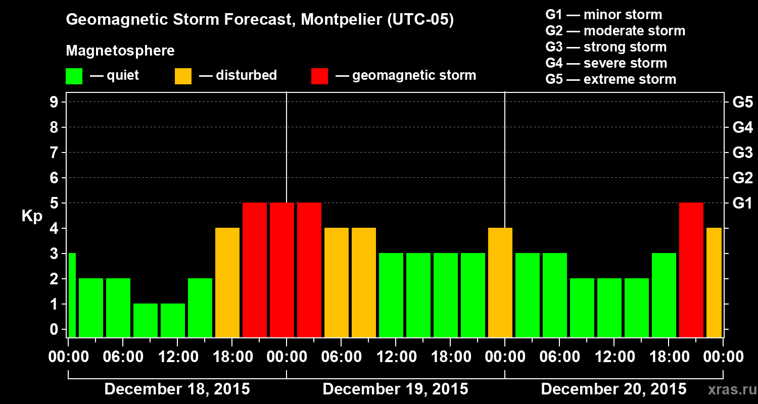 Geomagnetic storm forecast in Montpelier for Dec 18, 2015
