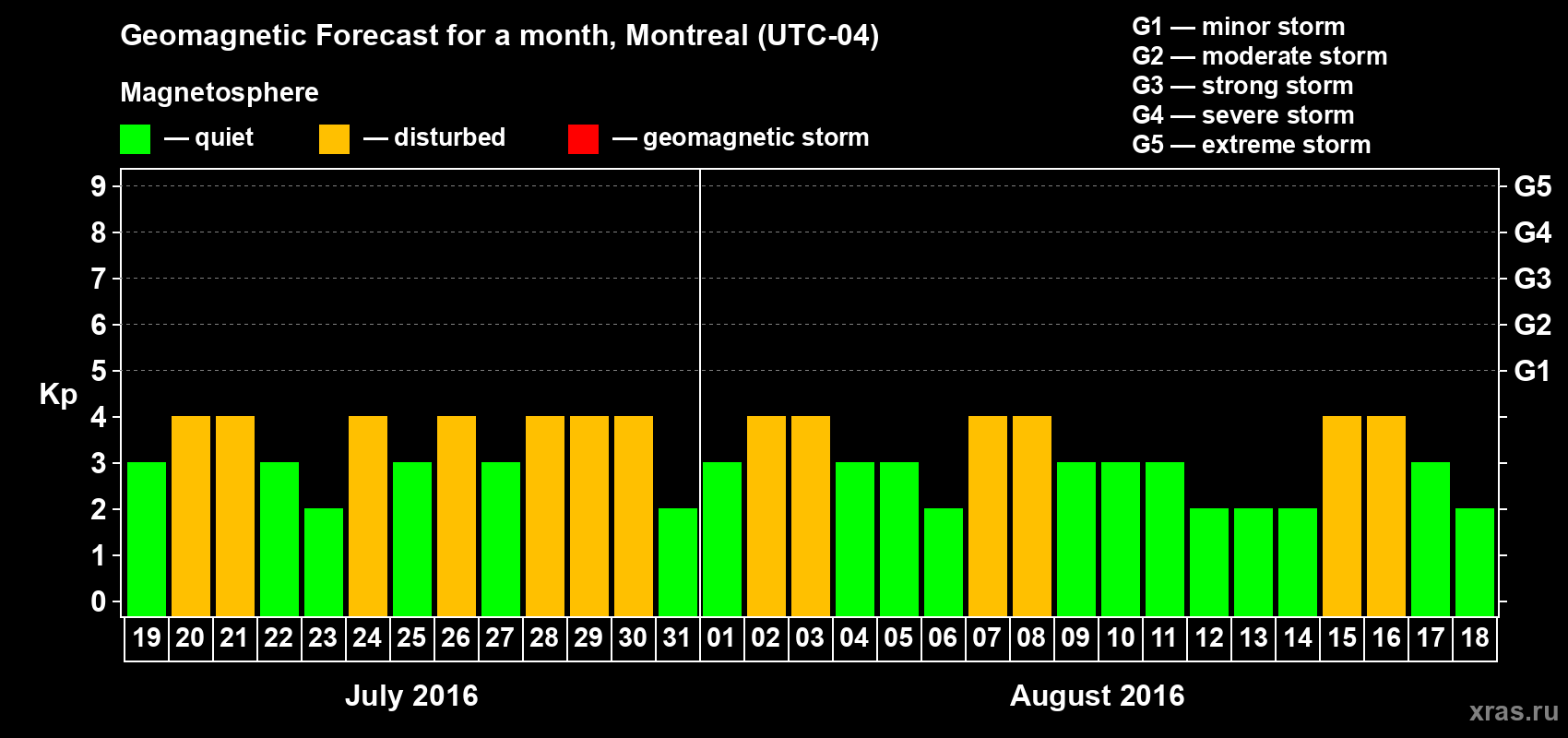 Geomagnetic storm forecast in Montreal for Jul 19, 2016